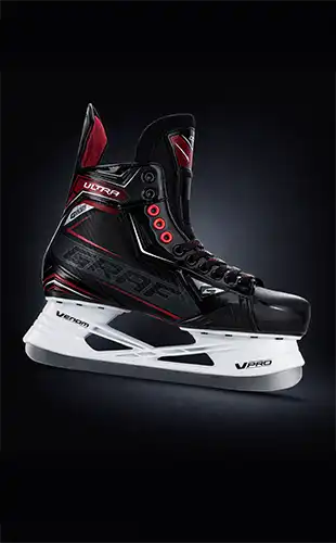 Hochwertiger Eishockeyschuh für Amateur-Eishockey mit markantem schwarz-rotem Design und erstklassigen Funktionen.
